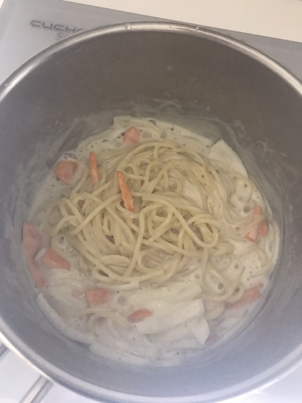 면을 익히다가 물기가 줄어들면 크림 투하 ~!